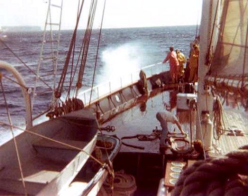 teQuest's aft deck heaved as the bow dug into another wave |